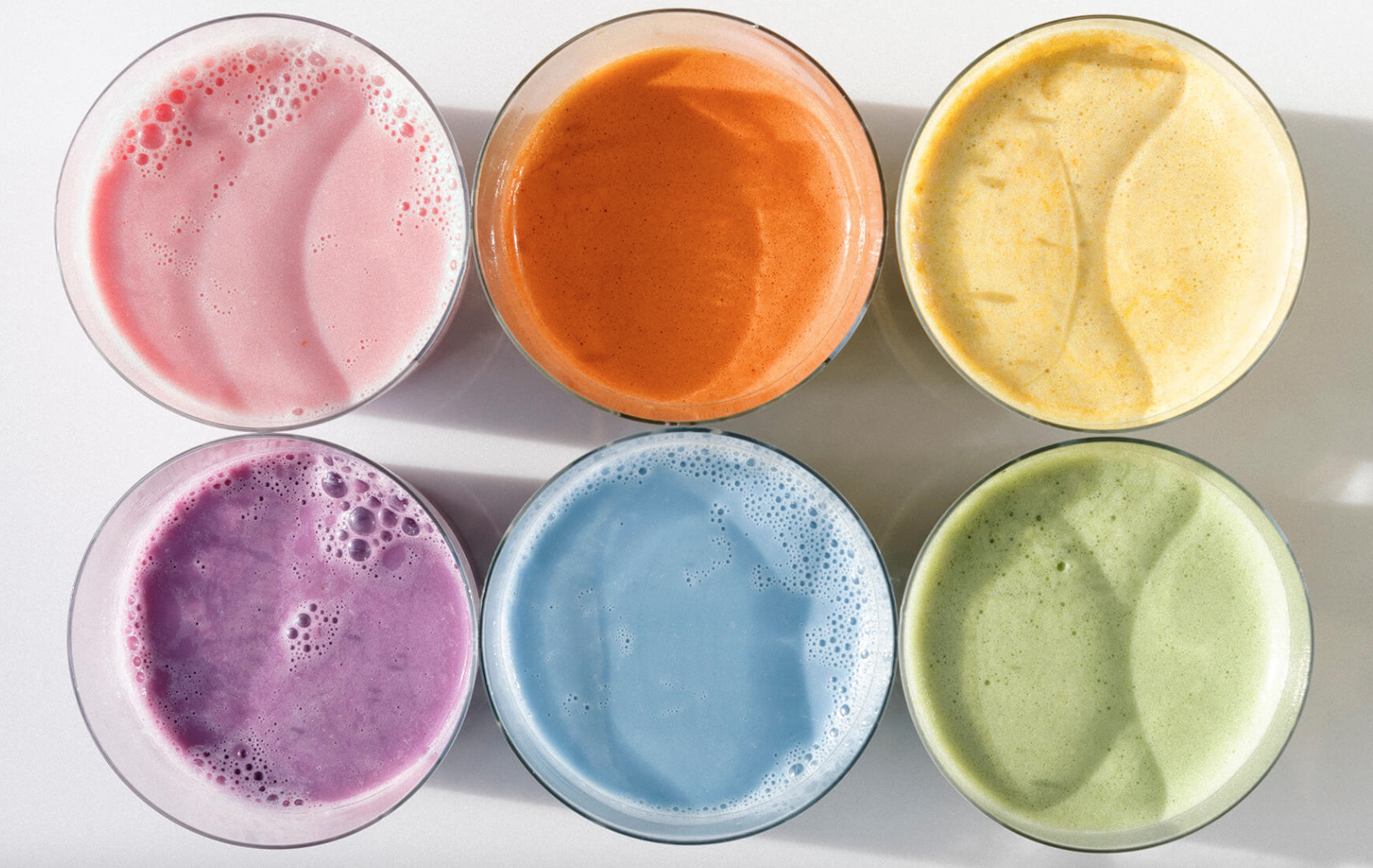 Butterfly pea flowers are a staunch blue but mixed with the luscious scarlet from the beetroot, and watch the milk transform into a vivid purple. This blue flower in particular contains catechins, which have been studied to rev metabolism and burn adipose tissue. The lavender is a soothing source for menstrual cramps, while promising research indicates it can support hair growth.