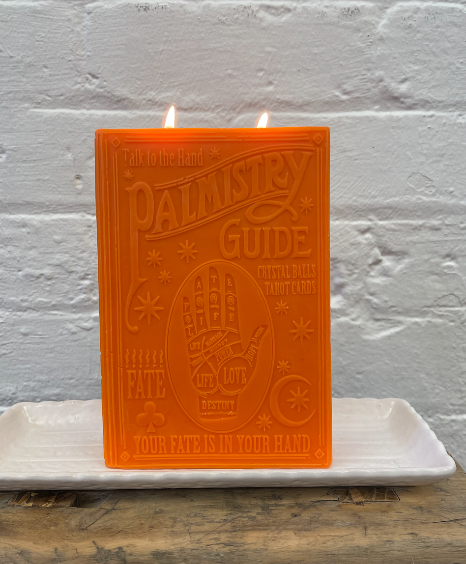 A sculptural candle inspired by vintage fortune-telling guides, reimagined in vivid colour. A playful nod to mysticism - where your fate, life, and love are literally in your hands. Designed for collectors of the unusual and the beautiful, this piece turns ritual into art